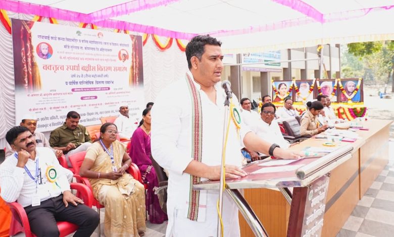 सौ.सुशीलामाई काळे यांच्या स्मरणार्थ आयोजित २५ व्या राज्यस्तरीय वक्तृत्व स्पर्धेच्या पारितोषिक वितरण प्रसंगी बोलतांना आ.आशुतोष काळे समवेत मान्यवर