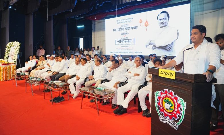 राज्याचे दिवंगत उपमुख्यमंत्री तथा अर्थमंत्री स्व.अजितदादा पवार यांना सोमवार (दि.०२) रोजी श्रद्धांजली वाहण्यासाठी यशवंतराव चव्हाण सहकार सभागृह, अहिल्यानगर येथे अहिल्यानगर जिल्हा मध्यवर्ती सहकारी बँकेच्या वतीने जलसंपदामंत्री तथा जिल्ह्याचे पालकमंत्री ना.राधाकृष्ण विखे पा.यांच्या उपस्थितीत सर्वपक्षीय शोकसभा पार पडली. यावेळी आपल्या भावना व्यक्त करतांना जिल्हा बँकेचे संचालक आमदार आशुतोष काळे बोलत होते.